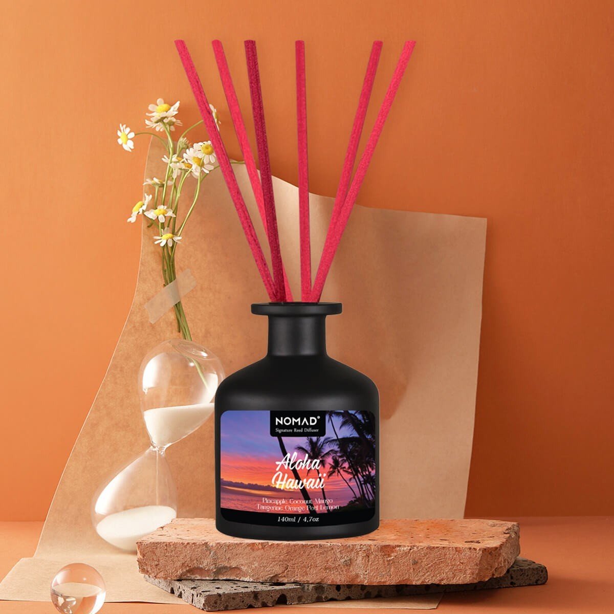 Bộ Tán Hương Que Mây Nomad Reed Diffuser 140ml - Aloha Hawaii mang đến một mùi hương nhiệt đới tươi mới, kết hợp giữa dứa tươi, hoa nhài và dừa, tạo không gian sảng khoái, vui tươi như những ngày nghỉ dưỡng ở Hawaii. Hương thơm lan tỏa nhẹ nhàng, liên tục, giúp thư giãn và làm mới không gian sống. Thiết kế tinh tế, dễ sử dụng, phù hợp cho phòng khách, phòng ngủ hoặc không gian thư giãn.