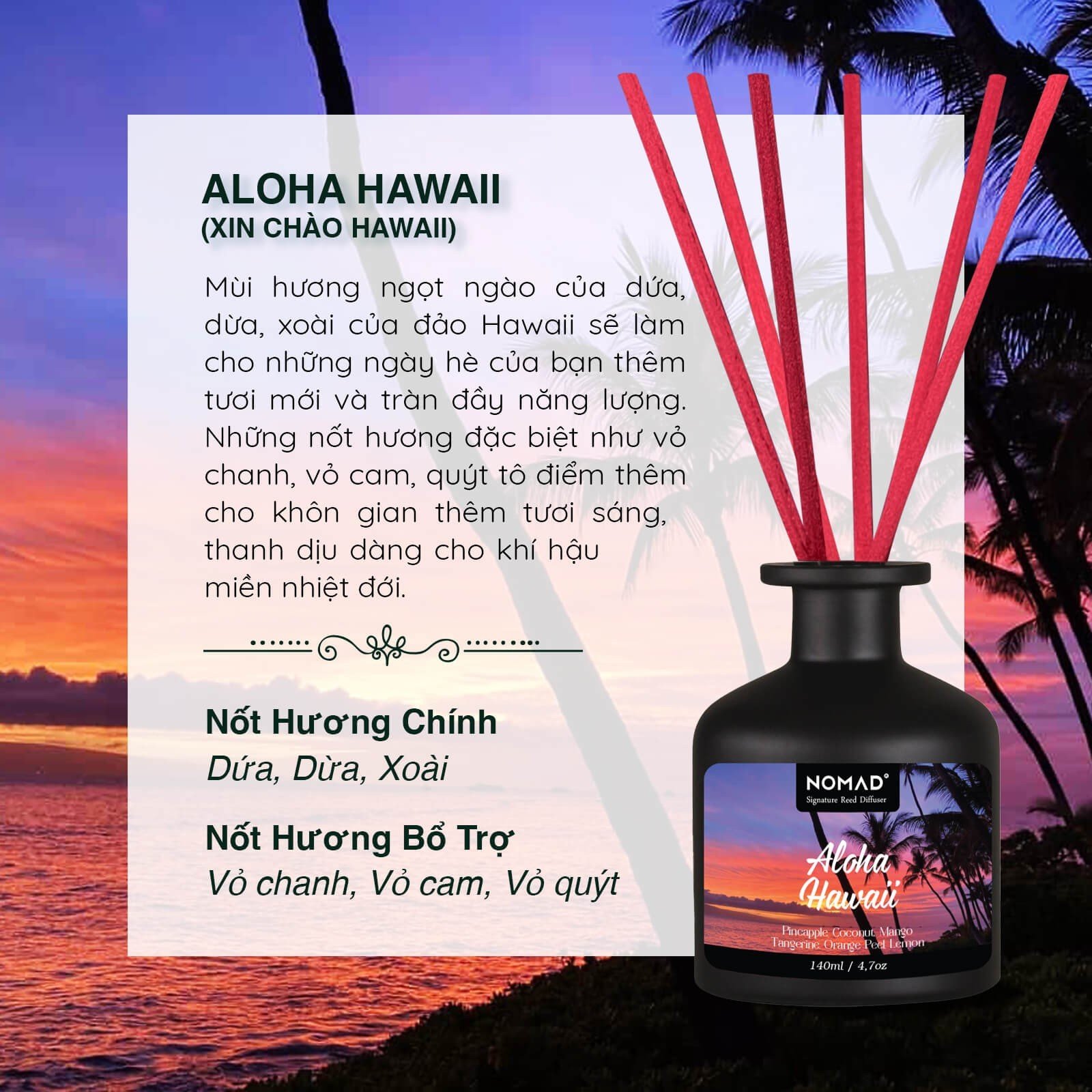 Mùi hương ngọt ngào của dứa, dừa, xoài của đảo Hawaii sẽ làm cho những ngày hè của bạn thêm tươi mới và tràn đầy năng lượng. Những nốt hương đặc biệt như vỏ chanh, vỏ cam, quýt tô điểm thêm cho khôn gian thêm tươi sáng, thanh dịu dàng cho khí hậu miền nhiệt đới.