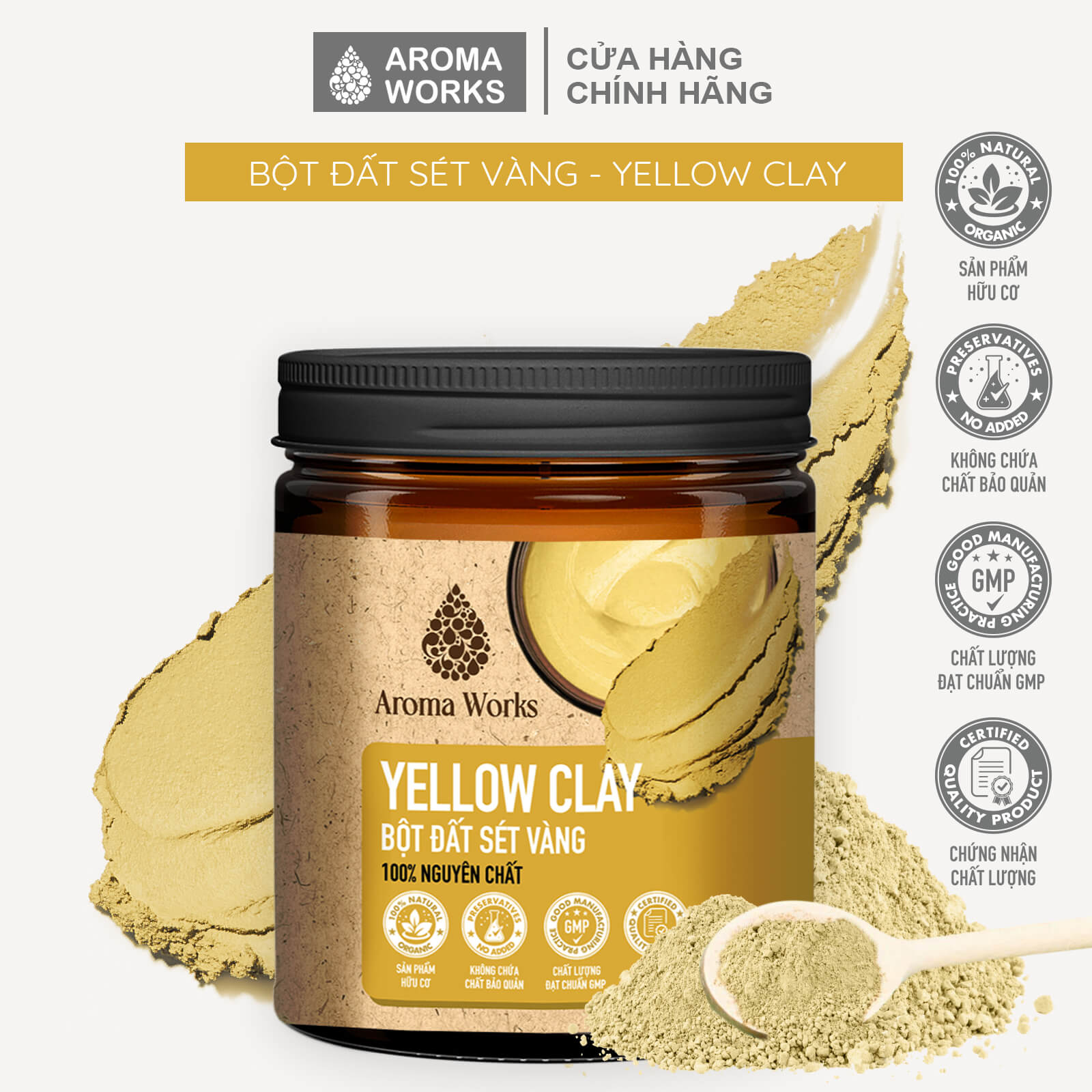 Bột Đất Sét Vàng Nguyên Chất Aroma Works Yellow Clay Powder 130gr
