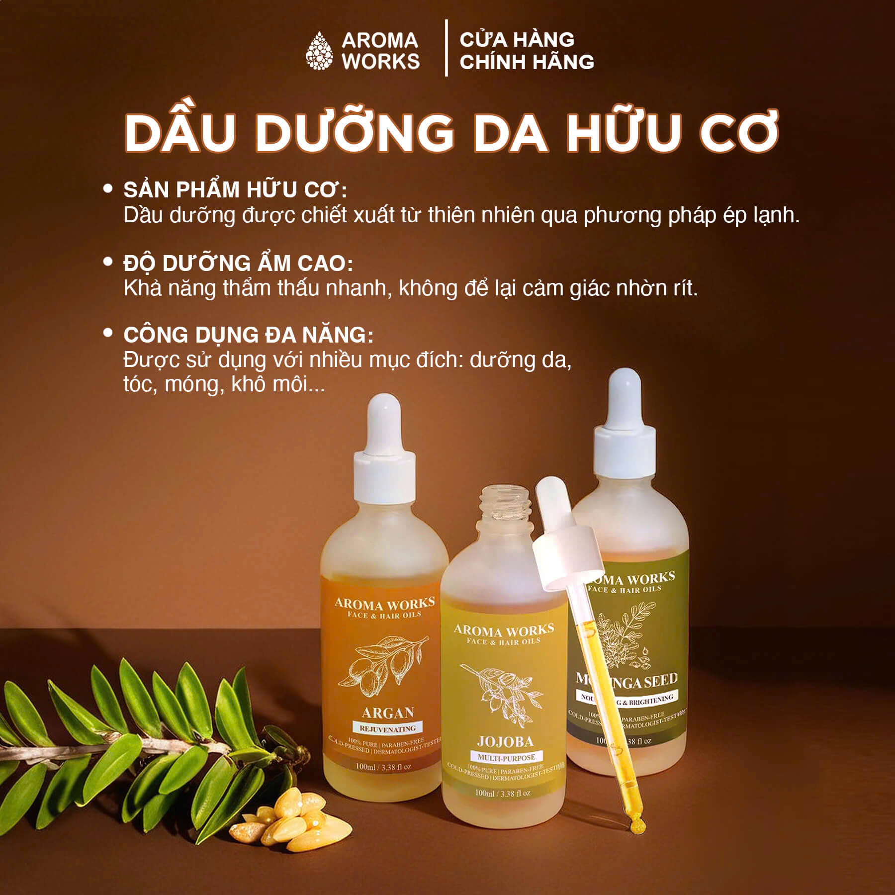 - Aroma Works là một thương hiệu nổi tiếng với các sản phẩm chăm sóc sắc đẹp và sức khỏe từ thiên nhiên, chú trọng vào việc sử dụng nguyên liệu hữu cơ và quy trình sản xuất bền vững, thân thiện với môi trường.