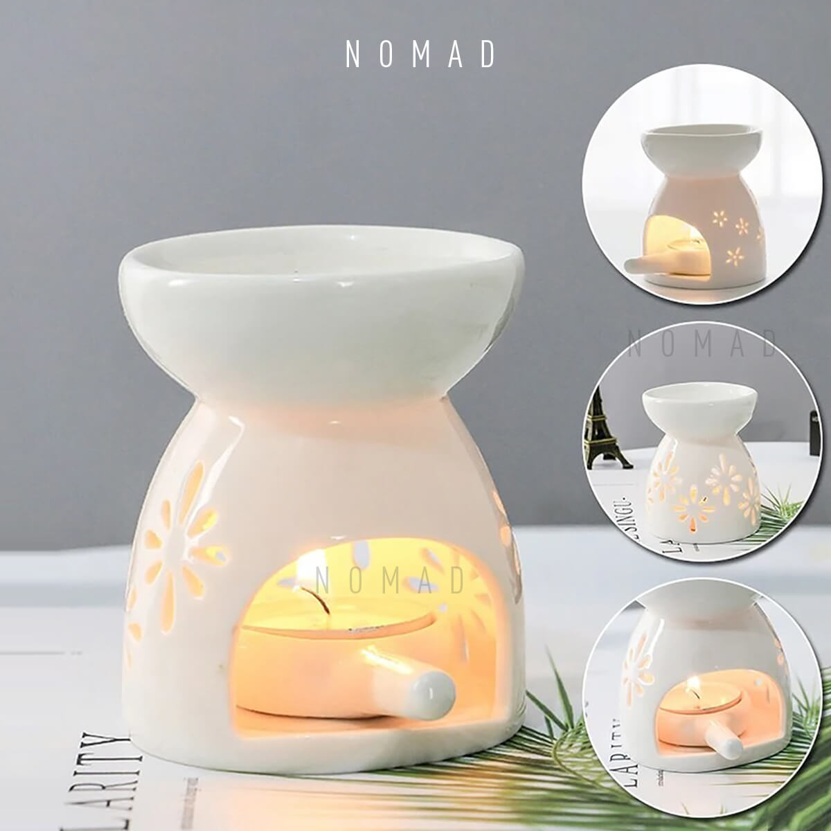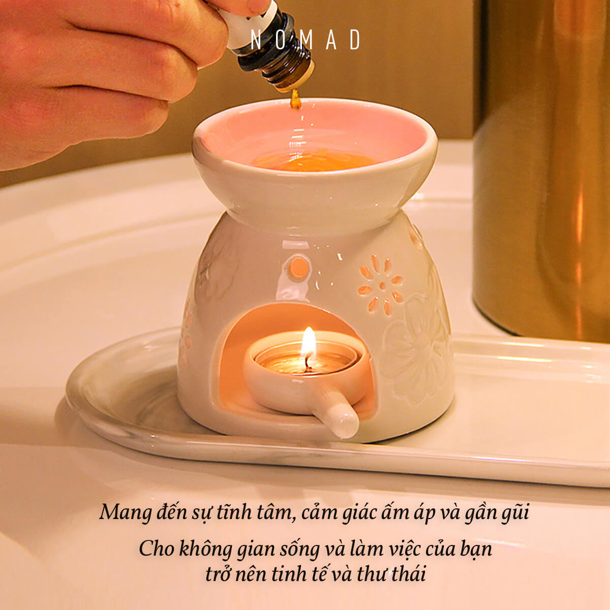 - Đốt 1 viên nến để ở bên trong đèn, chờ nước nóng lên tinh dầu sẽ tỏa mùi thơm.