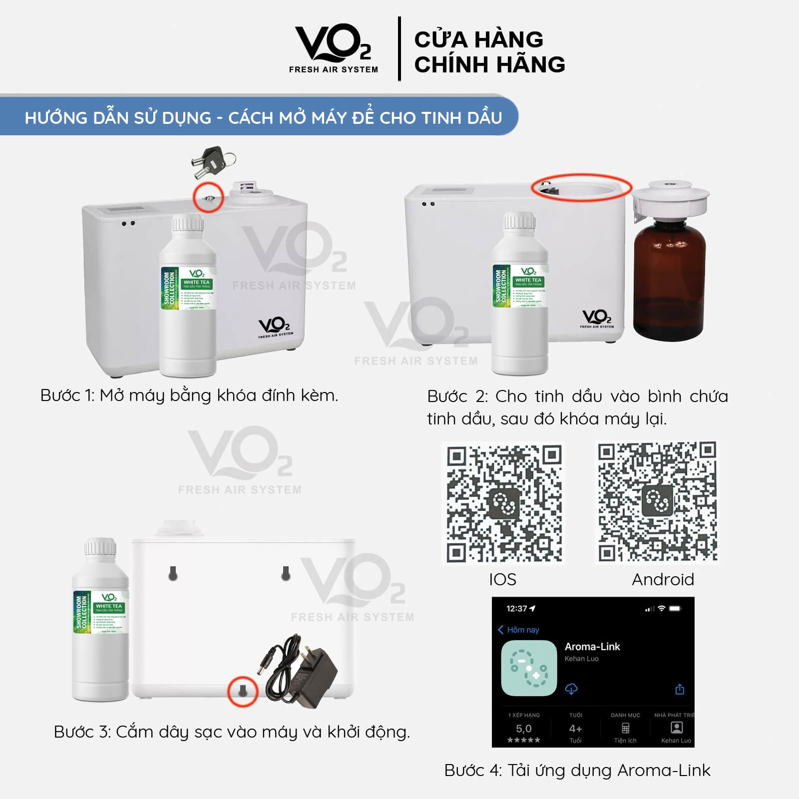 - Tạo không gian thư giãn: Máy xông tinh dầu VO2 giúp tạo ra không gian thư giãn, dễ chịu, thích hợp cho các phòng khách sạn, spa, phòng trị liệu hoặc khu nghỉ dưỡng cao cấp.