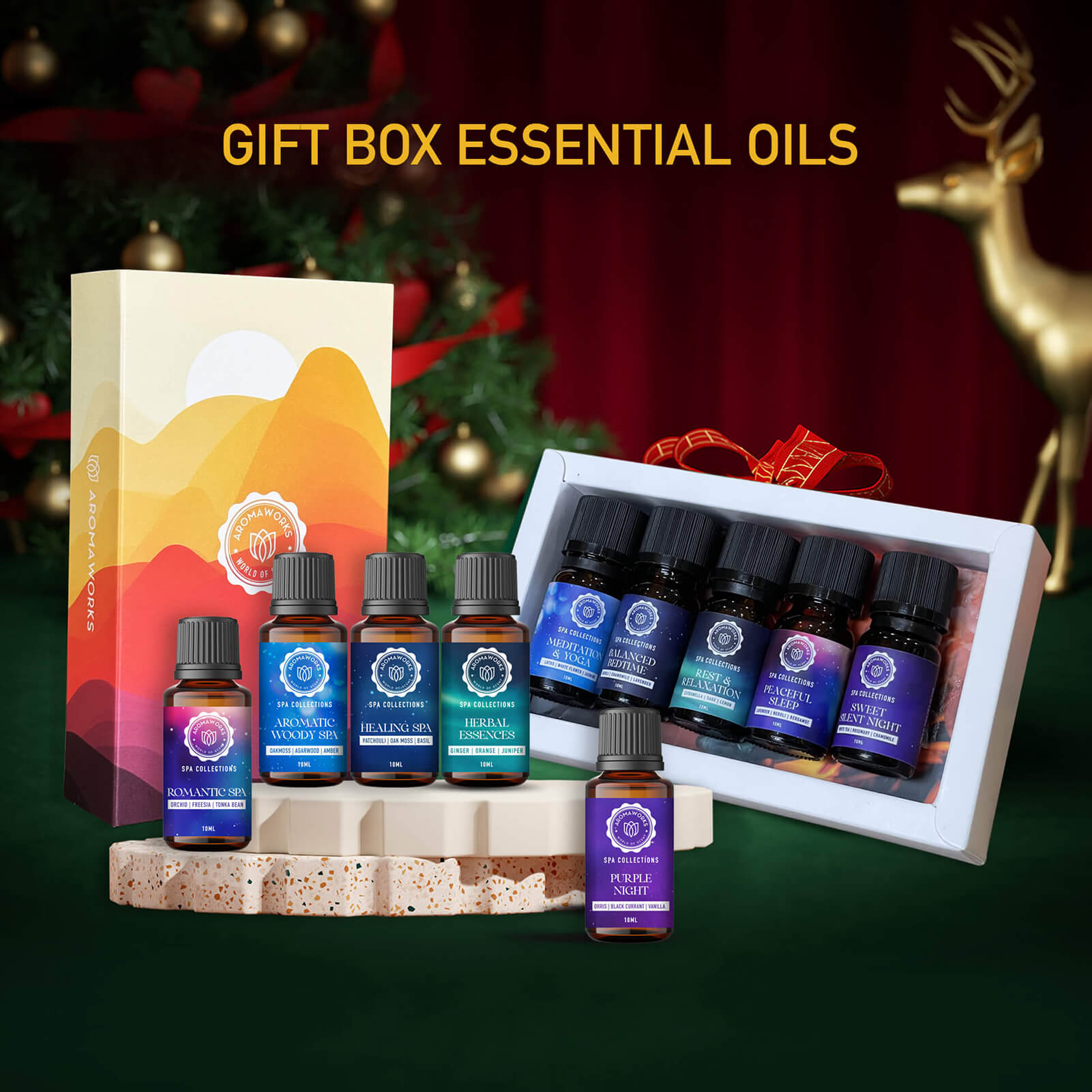 - Với những loại tinh dầu cao cấp và công dụng tuyệt vời, Set Quà Tặng Tinh Dầu Aroma Works là món quà đầy ý nghĩa, thể hiện sự quan tâm và tinh tế dành cho người nhận.
