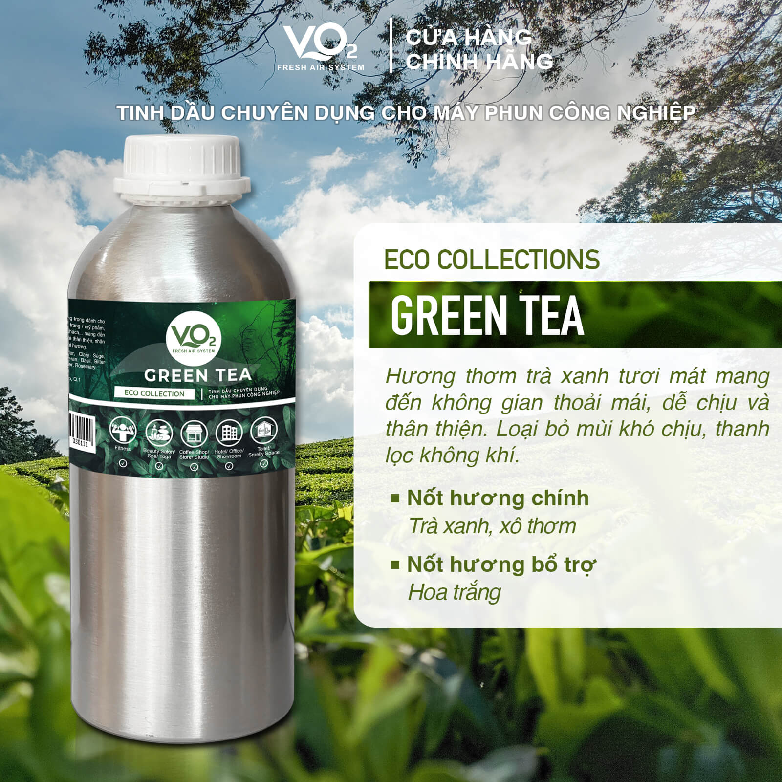 Tinh Dầu Cho Máy Phun Công Nghiệp VO2 Eco Collection - Green Tea