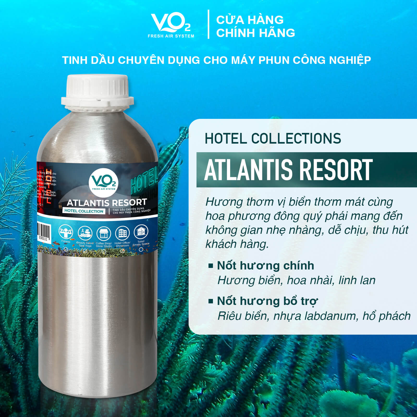 Tinh Dầu VO2 Hotel Collection - Atlantis Resort là lựa chọn lý tưởng cho việc tạo ra không gian thư giãn, sang trọng và dễ chịu trong các khách sạn, nhà hàng hoặc không gian sống tại gia. Với hương thơm đậm đà, quyến rũ, sản phẩm này mang đến cho bạn một trải nghiệm thư giãn tuyệt vời, giúp thanh lọc không khí và tạo bầu không khí nghỉ dưỡng như tại một khu resort cao cấp.