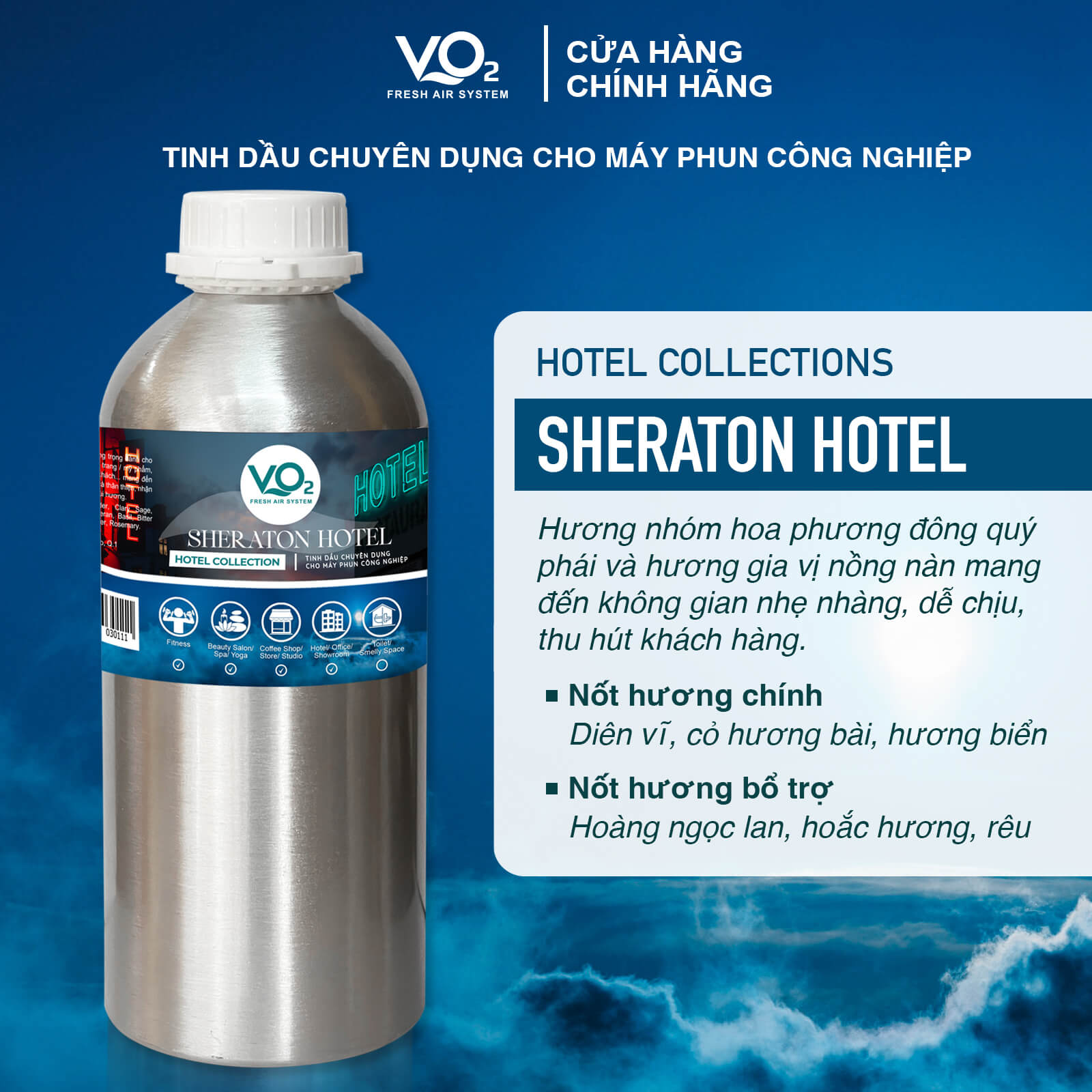 Tinh dầu VO2 Hotel Collection - Sheraton Hotel mang đến hương thơm đặc trưng, sang trọng và đẳng cấp, lấy cảm hứng từ các không gian khách sạn 5 sao. Sản phẩm là lựa chọn lý tưởng để tạo nên một không gian thanh lịch, thư giãn, phù hợp với các không gian sống, làm việc hoặc kinh doanh cao cấp.