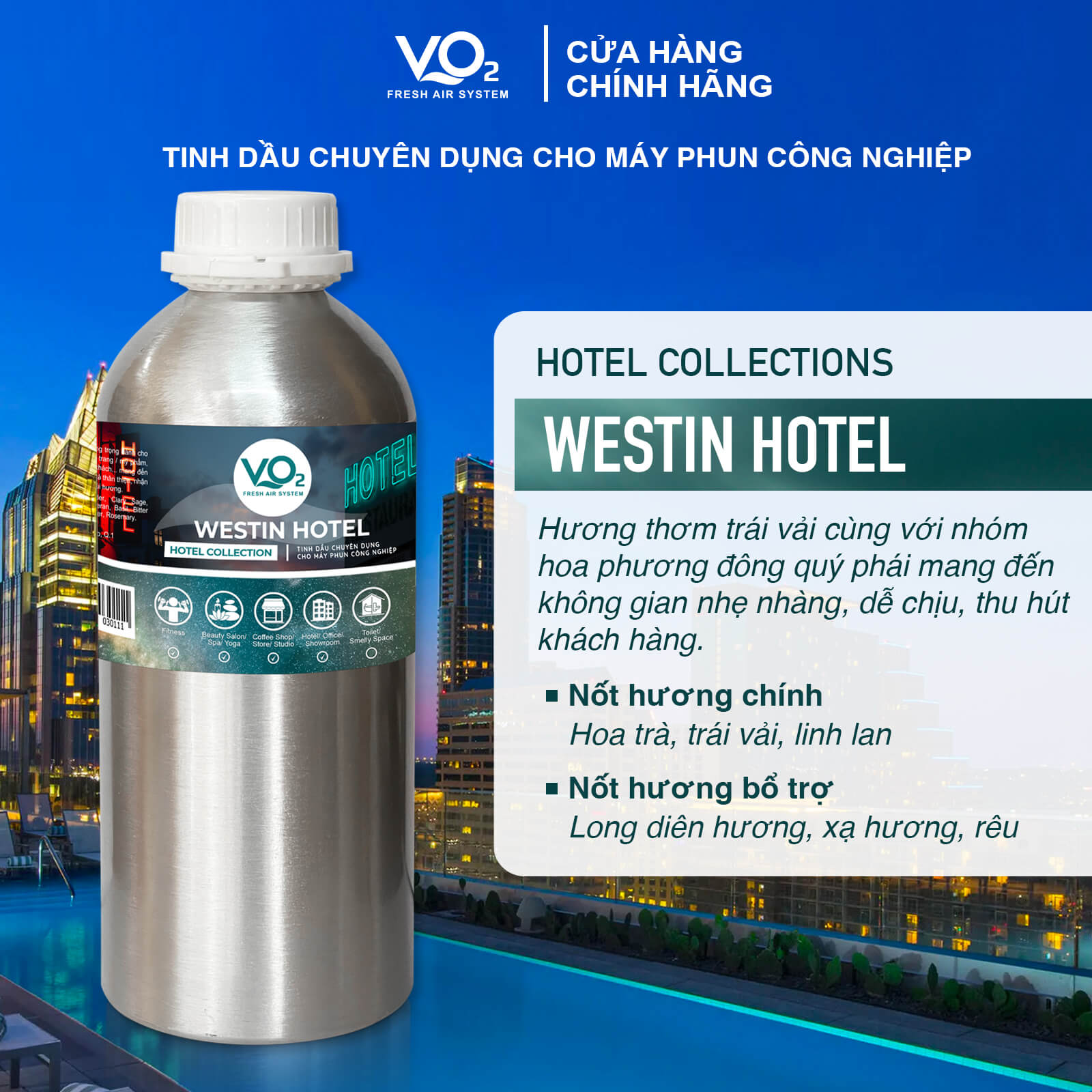 Tinh dầu VO2 Hotel Collection - Westin Hotel được thiết kế với hương thơm thanh lịch, hiện đại, gợi nhớ đến bầu không khí sang trọng và thư giãn tại các khách sạn Westin nổi tiếng. Sự pha trộn hoàn hảo giữa các tầng hương thiên nhiên cao cấp tạo nên một không gian đẳng cấp, giúp bạn thư giãn và tận hưởng cuộc sống.
