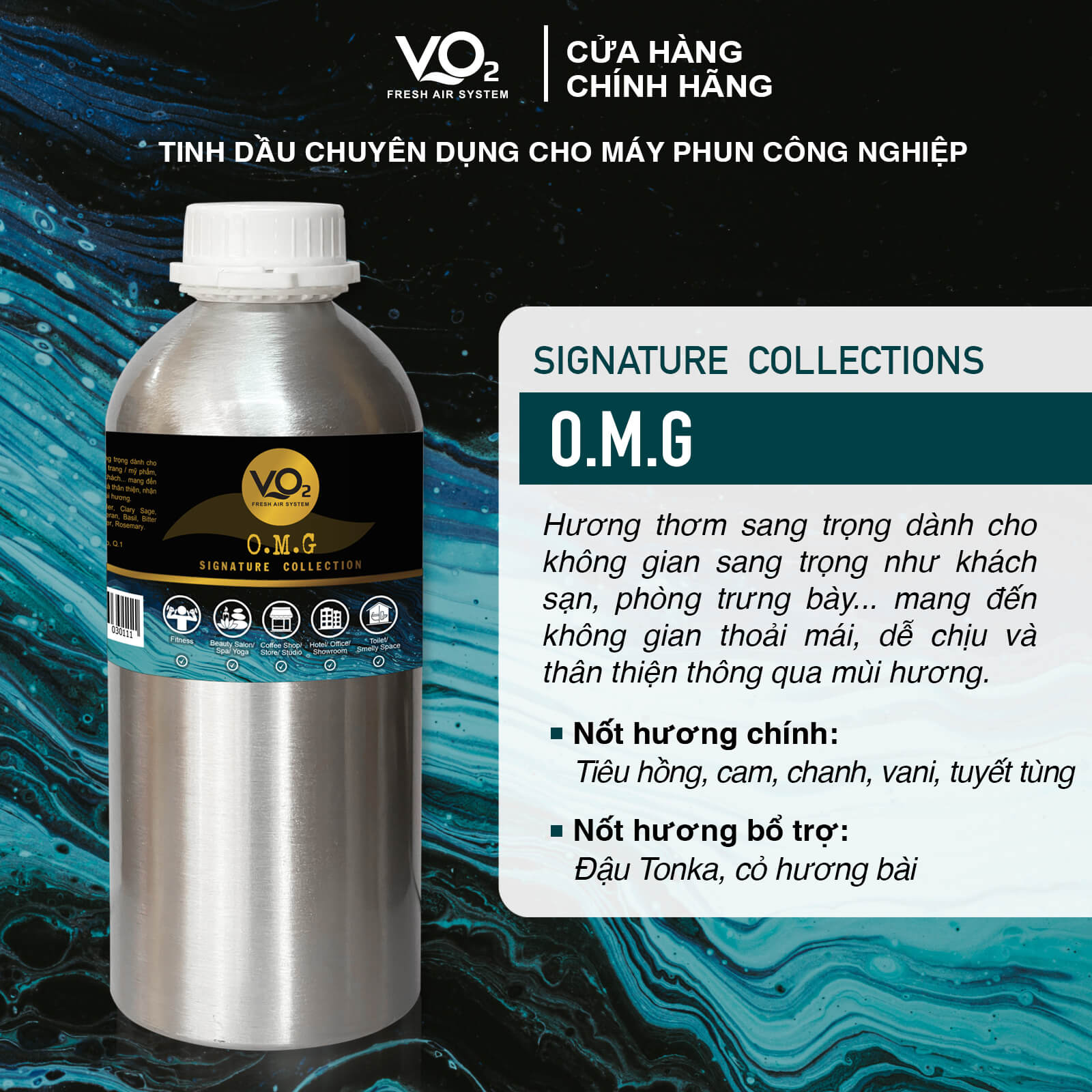 - Tinh dầu thơm VO2 chuyên dụng dành cho máy phun công nghiệp không cần pha thêm nước.