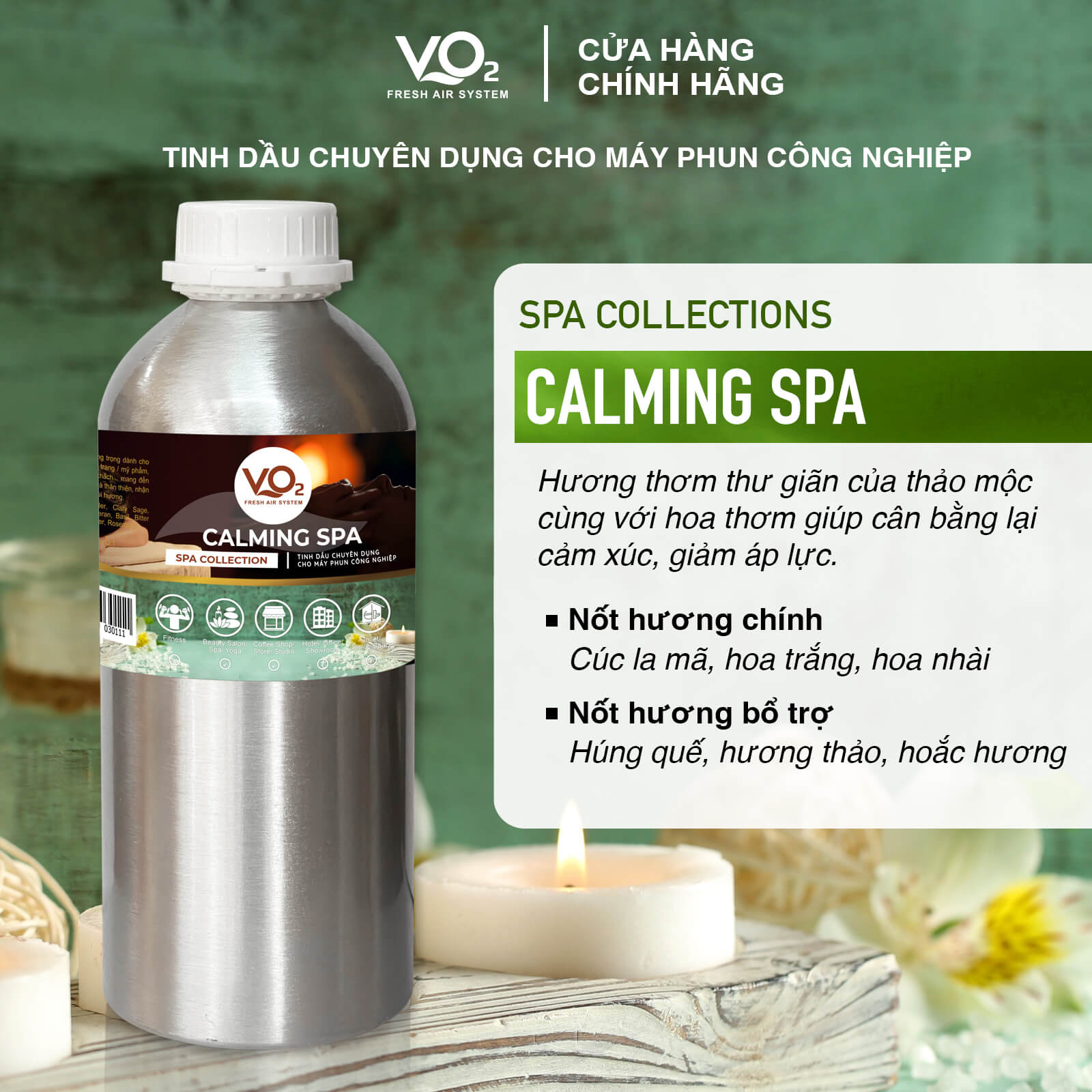 Tinh Dầu VO2 Spa Collection - Calming Spa mang đến một không gian yên tĩnh, thư giãn với hương thơm dịu nhẹ, giúp làm dịu tâm trí và giảm căng thẳng. Sản phẩm được thiết kế đặc biệt để sử dụng trong máy phun tinh dầu công nghiệp, phù hợp cho spa, resort, hoặc không gian sống cần sự bình yên và cân bằng.