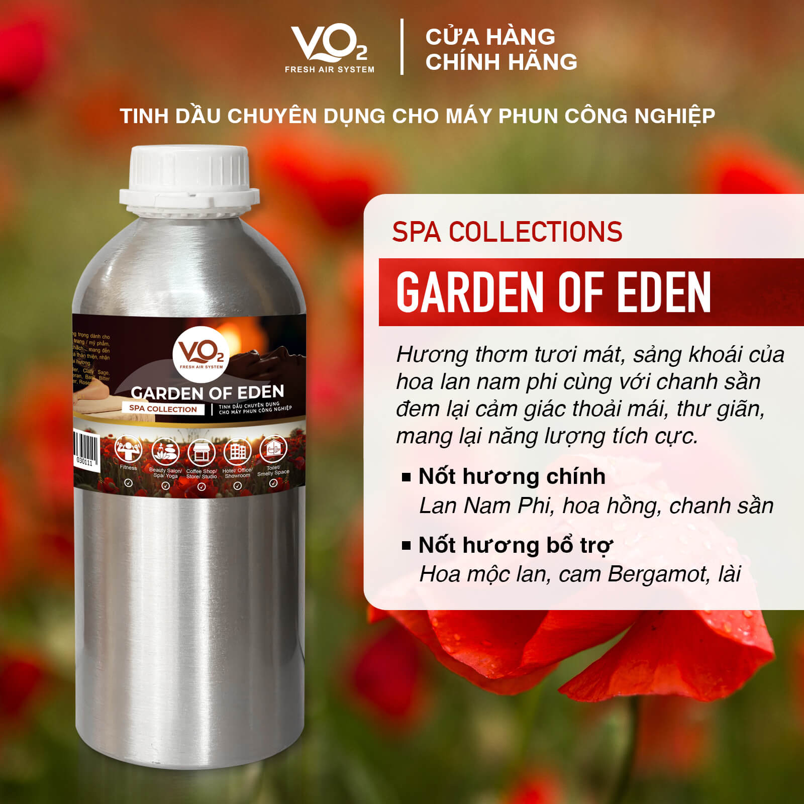 Tinh Dầu VO2 Spa Collection - Garden of Eden mang hương thơm quyến rũ và tinh tế, lấy cảm hứng từ khu vườn thần thoại với sự kết hợp hài hòa giữa các loài hoa, trái cây và thảo mộc tự nhiên. Sản phẩm không chỉ tạo không gian sống thư thái mà còn mang lại cảm giác thư giãn và đầy sức sống.