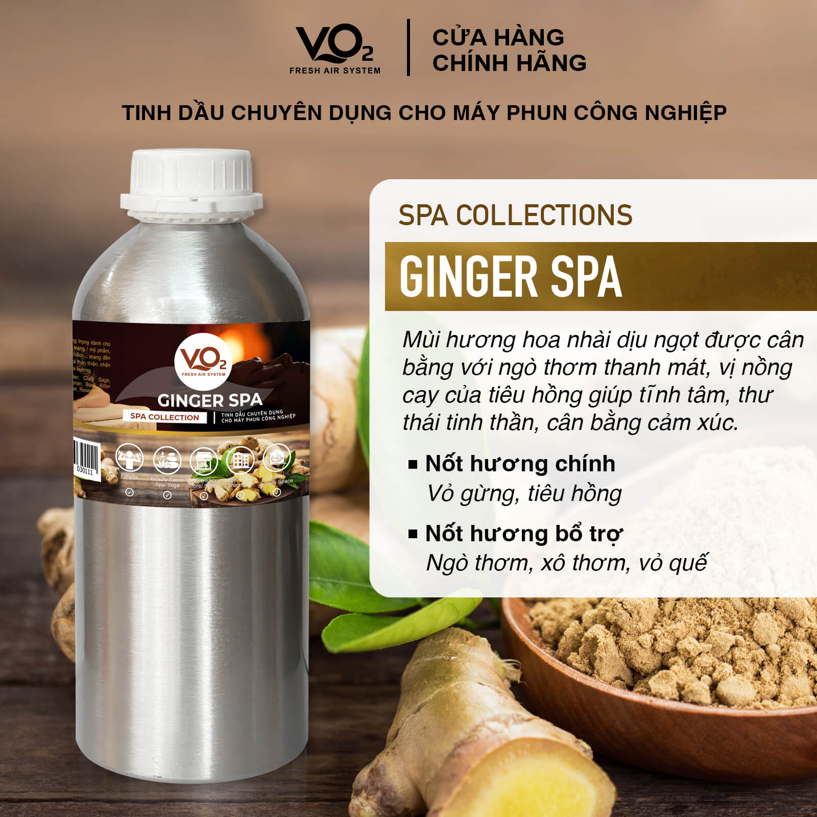 Tinh Dầu Cho Máy Phun Công Nghiệp VO2 Spa Collection - Ginger Spa