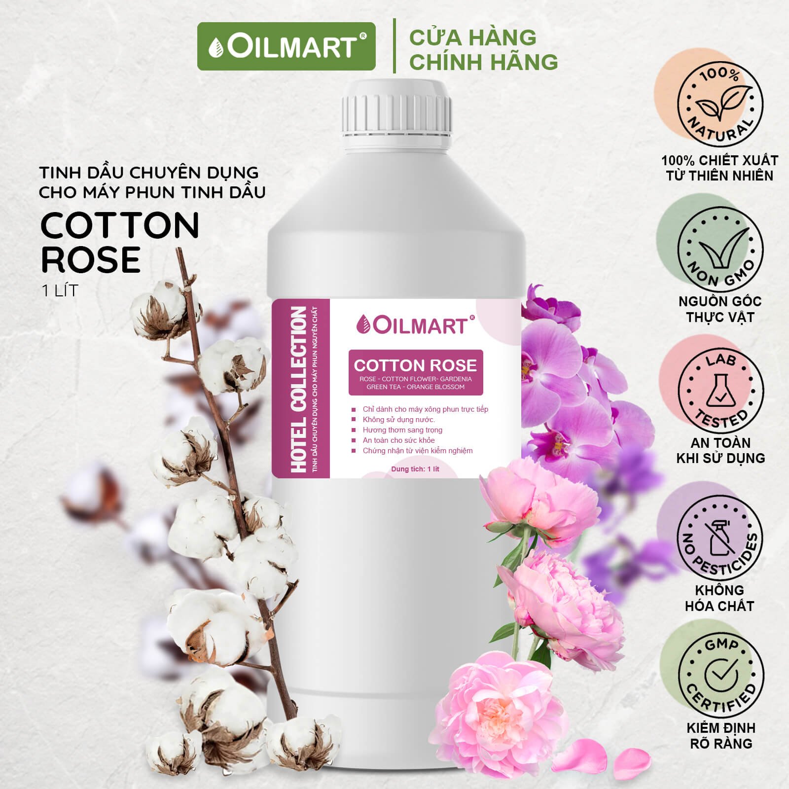 Tinh dầu nước hoa Cotton Rose của Oilmart mang đến sự hòa quyện hoàn hảo giữa hương thơm thanh khiết của vải bông trắng và nét quyến rũ dịu dàng từ hoa hồng. Sản phẩm được tối ưu hóa dành riêng cho máy phun tinh dầu công nghiệp, là lựa chọn lý tưởng cho các không gian cần sự sang trọng, thư giãn và khử mùi hiệu quả như khách sạn, spa, showroom, nhà hàng và văn phòng cao cấp.