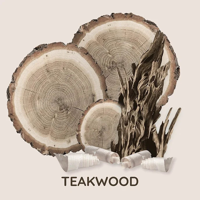 - Nốt hương giữa (Middle notes): Gỗ Teak, Caramel