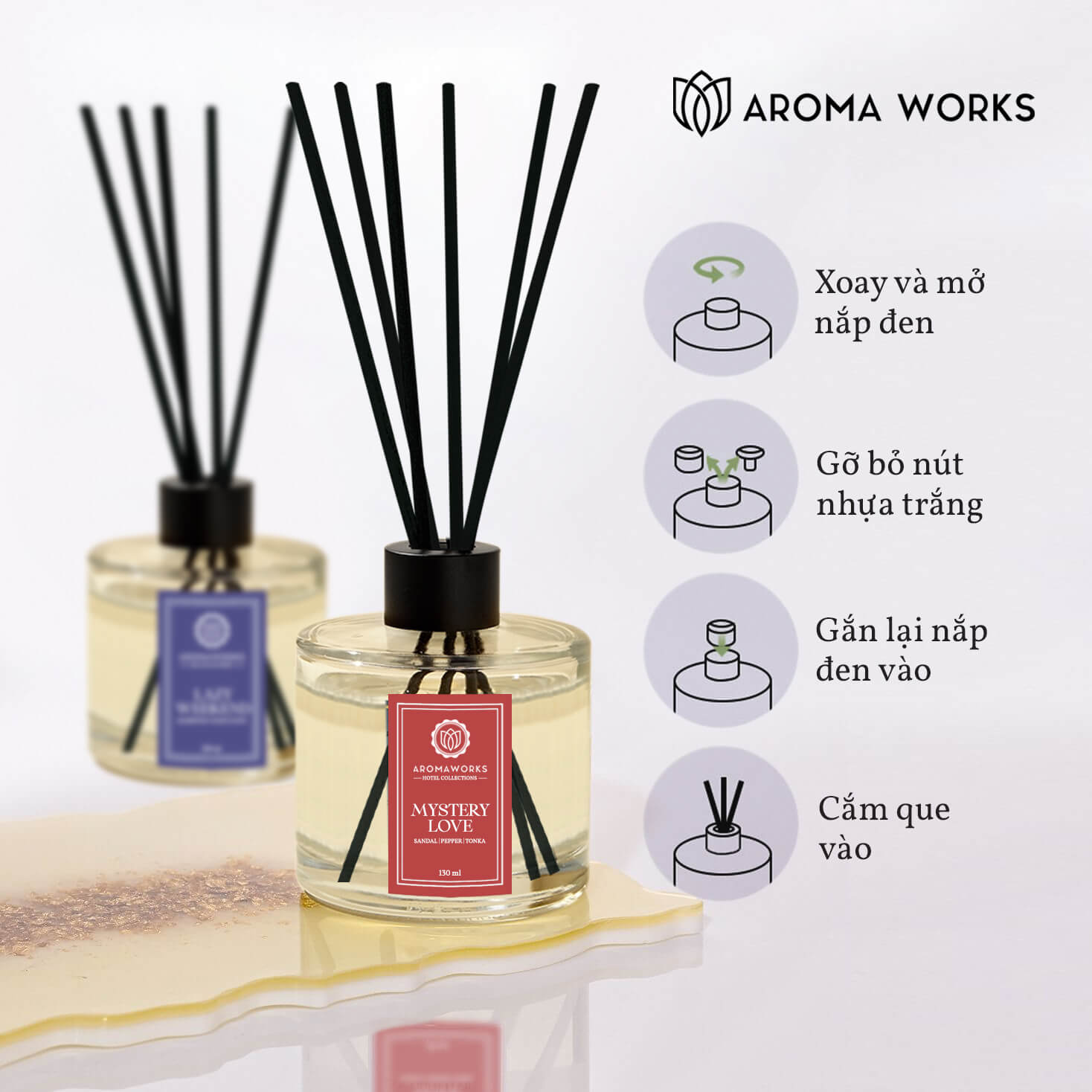 - Trở đầu que hoặc thay que mới khi cần thiết để đảm bảo hiệu quả phát tán hương thơm tốt nhất.