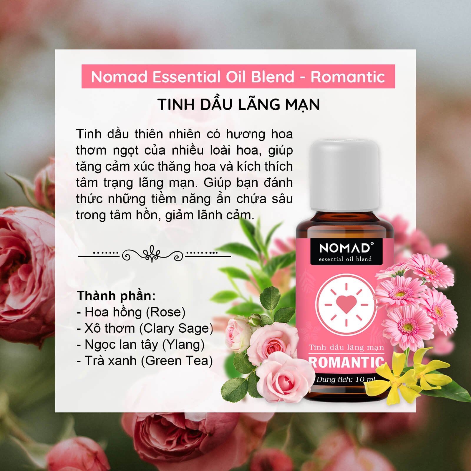 Tinh Dầu Thư Giãn, Lãng Mạng Nomad Essential Oil Blend - Romantic